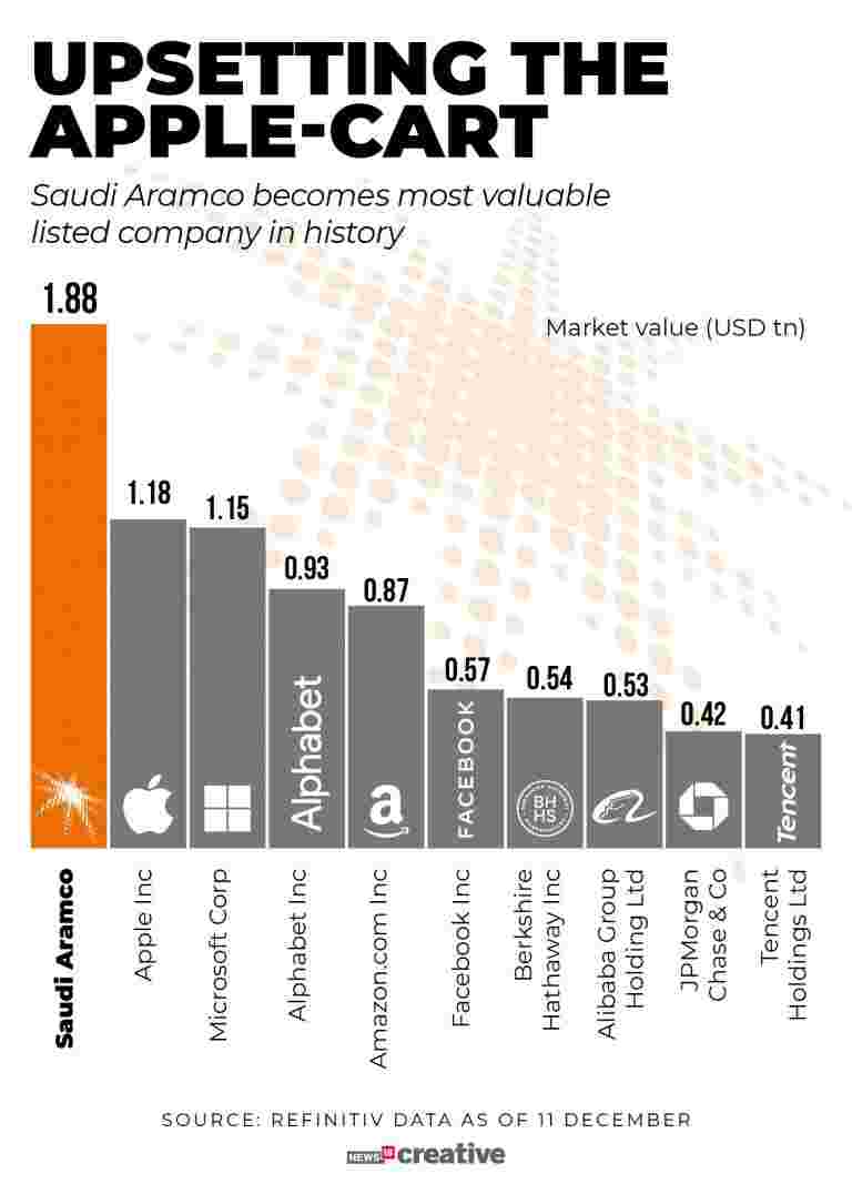 沙特阿美公司上市:以下是與最有價值的名單上的其他巨人的比較