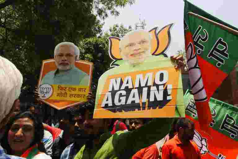 Modi在2014年的投票勝于2014年同樣卓越。當國家民主聯盟于2014年贏得勝利時,BJP在Lok Sabha贏得了282個席位。這是三十年來第一次獲得絕對多數的一方。