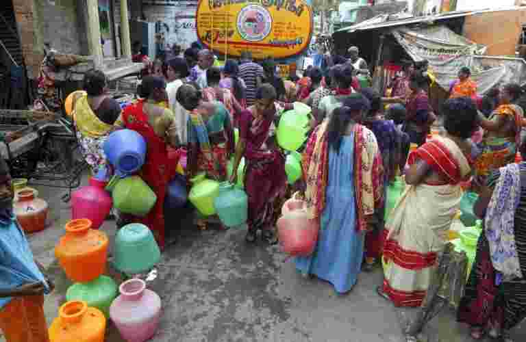 凱達村自去年以來一直受到干旱的襲擊。地面水位在某些區域下降了800-1000英尺。鉆孔井不尋找水,被村民們稱為浪費錢。即使它做過,也是鹽鍋區域的一部分,大多數地下水是鹽水,使其不適合消費。在Kautha的絕望村民深深地挖掘了河馬干的床,為水桶。
