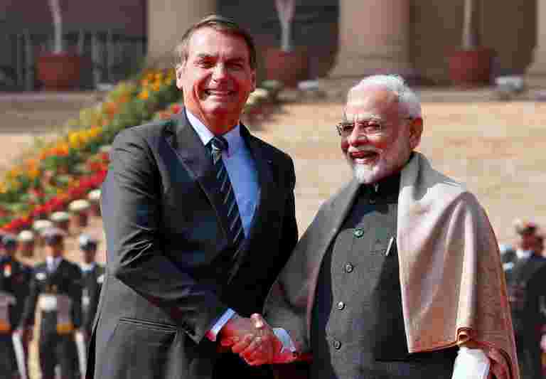 納倫德拉·莫迪和巴西總統杰爾博爾森·羅羅將致力于召開社會媒體,以召開較近的合作和協議,在Bolsonaro的正式訪問Toindia。
